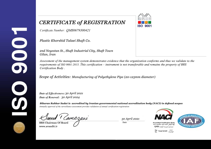 برای حصول اطمینان از کیفیت لوله های پلی اتیلن خورشید طلایی، محصولات ما آزمونهای زیر را پشت سر می گذارند: